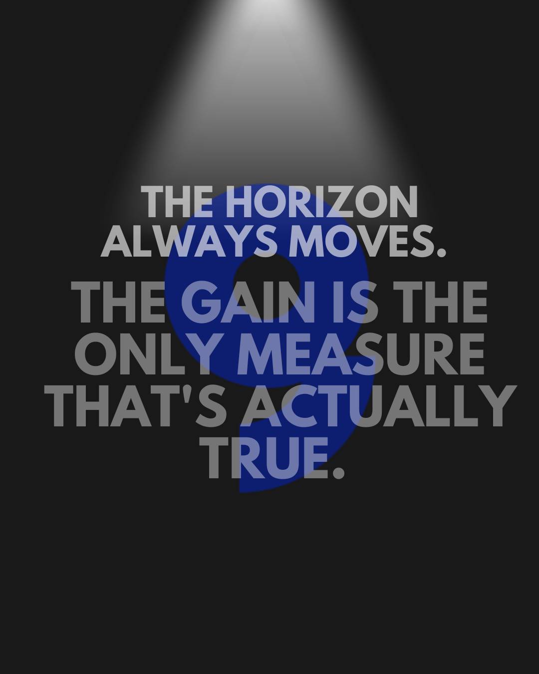 The Gain isn't a consolation prize for people who didn't make it. It's the honest measure. It's the only measure that's actually true, because the horizon always moves. You hit a goal and the next one appears. That's not failure, that's how vision works. But if you never stop to mark the ground you've covered, you'll spend your whole life feeling like you haven't moved.