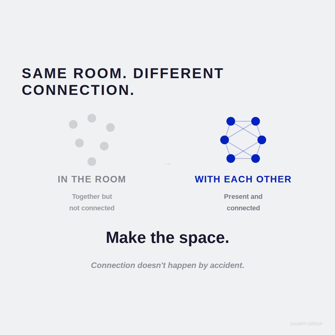 I think about this a lot for you too. You probably don't need a two-day offsite. You need five minutes before your next meeting where you actually check in with each other. Not the project. Each other.